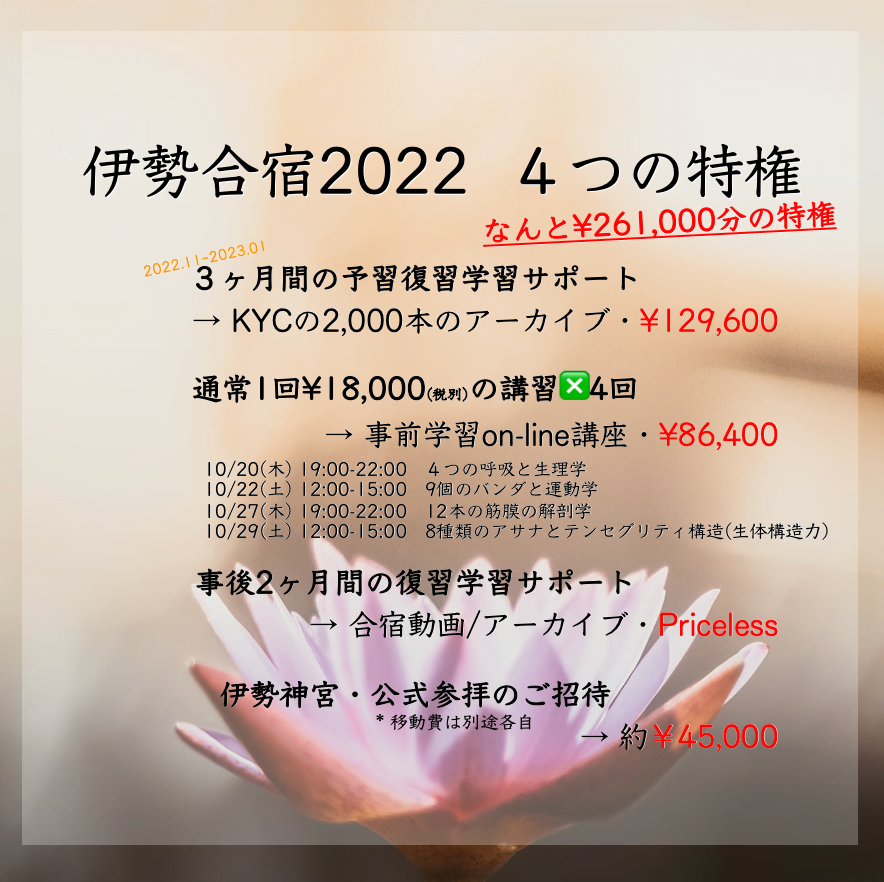 伊勢神宮参拝リトリート+ KYC-Academy 【身-呼吸】集中合宿+ ~2022.11.19土-22火~