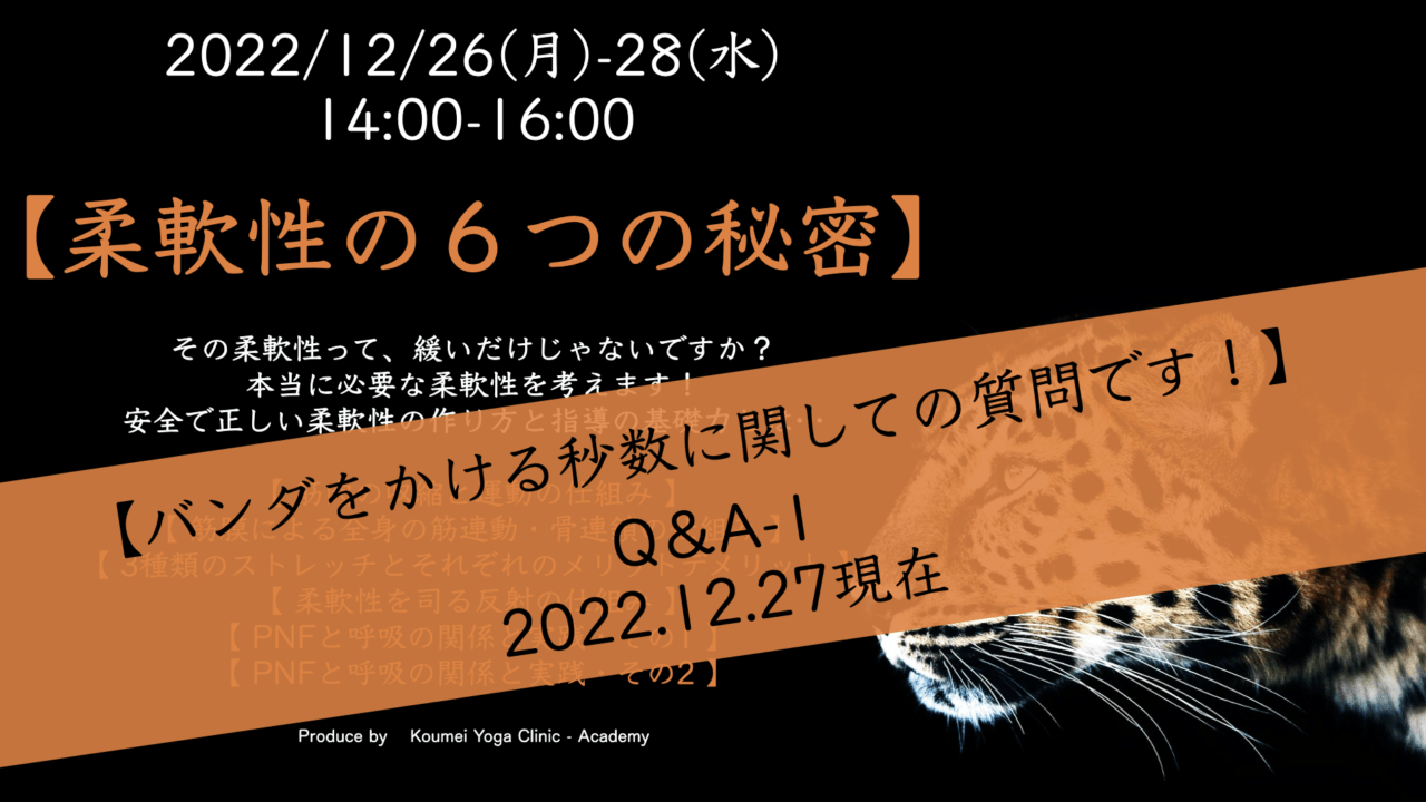 1: Functional Support(基礎1 / 機能向上)【バンダをかける秒数に関しての質問です!】柔軟性の6つの秘密 Q&A-1 2022.12.27現在 〜KYC-Academy〜 KYC 2022年12月27日 このコンテンツを閲覧するにはログインが必要です。 ログインはこちら. 新規会員登録はこちら
