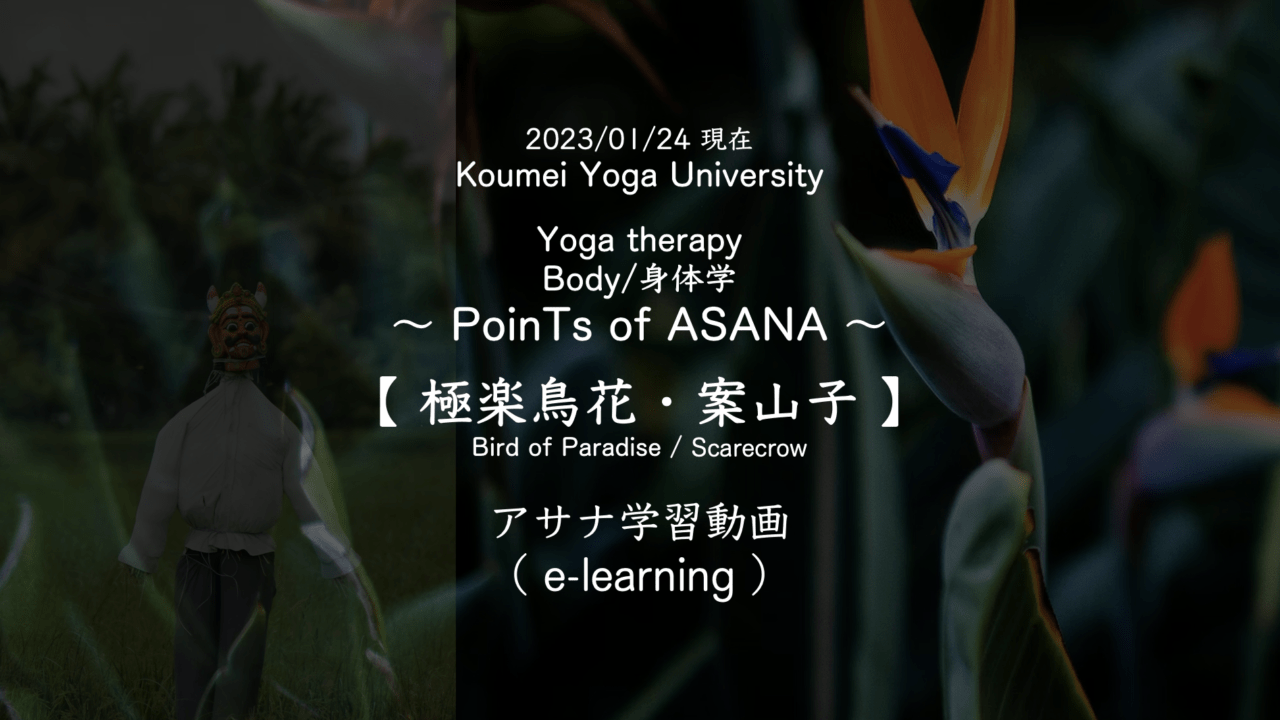 2023.01PoinTs of ASANA【 極楽鳥花・ ⇆ 案山子・Scarecrow 】(2023.01.24現在) 〜KYU/Yoga therapy/Body(身体学) ・事前学習動画( e-learning ) 〜 KYC 2023年1月24日 2025.04.26 このコンテンツを閲覧するにはログインが必要です。 ログインはこちら. 新規会員登録はこちら Bird of Paradise Scarecrow 側屈 後屈 案山子 極楽鳥花 股関節 肩甲骨 肩関節 軸伸展1 軸伸展2