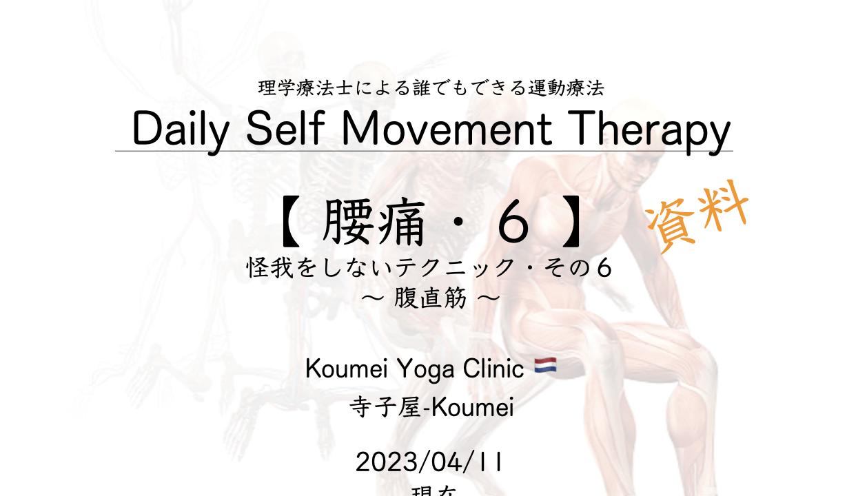 2023.04資料【 腰痛6〜腹直筋〜 】(2023.04.11現在)〜 怪我をしないテクニック その6/Daily Self Movement Therapy 〜 KYC 2023年4月11日 / 2025年5月13日 このコンテンツを閲覧するにはログインが必要です。 ログインはこちら. 新規会員登録はこちら Daily Self Movement Therapy 怪我をしないテクニック 腰痛 腹直筋 資料