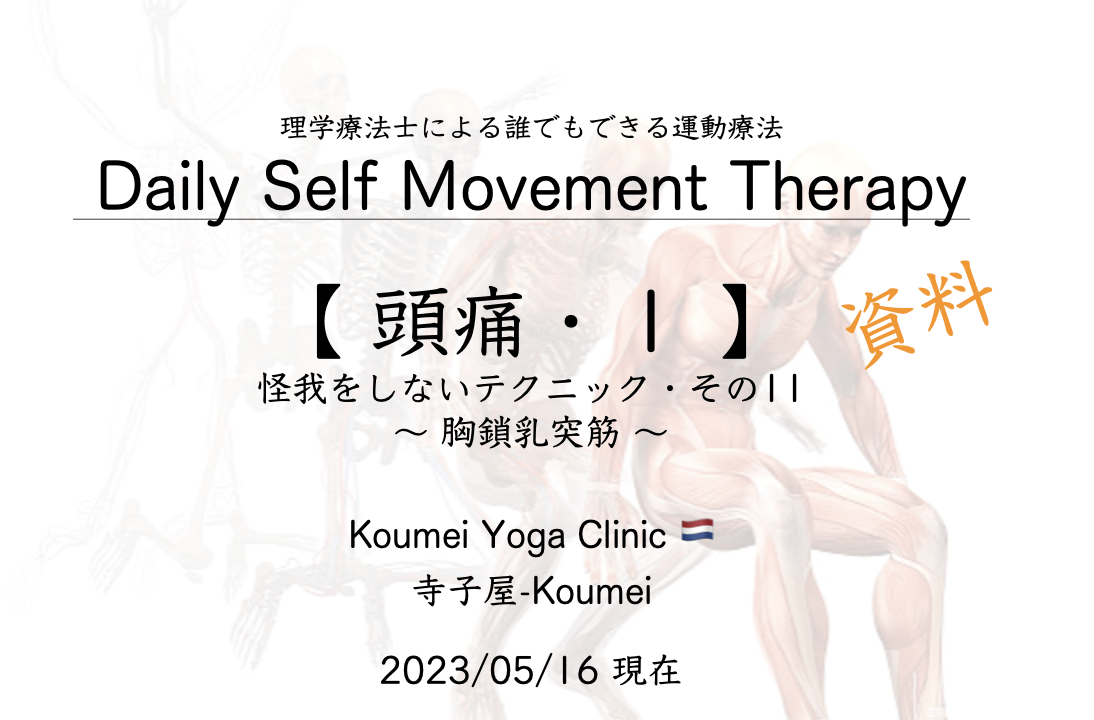 2023.07資料【 頭痛1〜胸鎖乳突筋〜 】(2023.05.16現在)・怪我をしないテックニック その11・Daily Self Movement Therapy KYC 2023年5月16日 / 2025年5月13日 このコンテンツを閲覧するにはログインが必要です。 ログインはこちら. 新規会員登録はこちら Daily Self Movement Therapy 怪我をしないテクニック 胸鎖乳突筋 資料 運動療法 頭痛