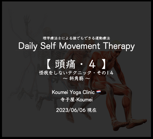 2023.06【 頭痛4〜斜角筋〜 】(2023.06.06現在)・怪我をしないテックニック その14/Daily Self Movement Therapy 〜 KYC 2023年6月6日 / 2025年3月19日 このコンテンツを閲覧するにはログインが必要です。 ログインはこちら. 新規会員登録はこちら Daily Self Movement Therapy テクニック 予防運動 怪我をさせない 怪我をしない 理学療法士による運動療法というレッスン 運動療法 運動療法というレッスン 頭痛