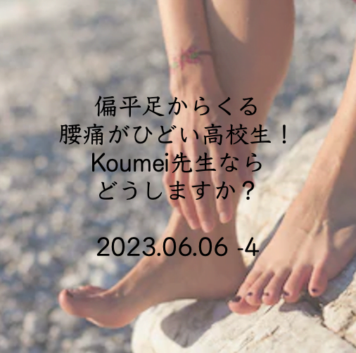 【 YES Koumei !】Q&A【偏平足からくる腰痛がひどい高校生!Koumei先生ならどうしますか?】(2023.06.06現在-4)〜 Terakoya Koumei 一問一答 〜 KYC 2023年6月6日 / 2025年5月2日 このコンテンツを閲覧するにはログインが必要です。 ログインはこちら. 新規会員登録はこちら Q&A 一問一答 寺子屋 扁平足 理学療法士 腰痛 運動療法