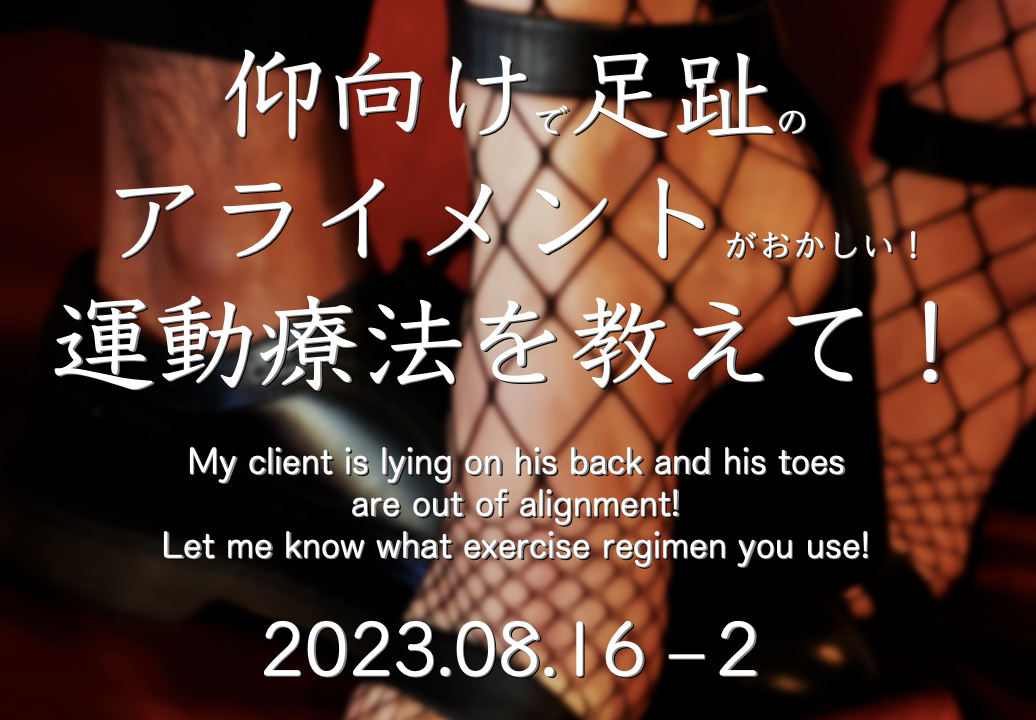 【 YES Koumei !】Q&A【仰向けで足趾のアライメントがおかしい!運動療法を教えて!】(2023.08.16現在 -2)〜 Terakoya Koumei 一問一答 〜 KYC 2023年8月15日 / 2025年5月2日 このコンテンツを閲覧するにはログインが必要です。 ログインはこちら. 新規会員登録はこちら Q&A アライメント 一問一答 寺子屋 理学療法士 足趾 運動療法