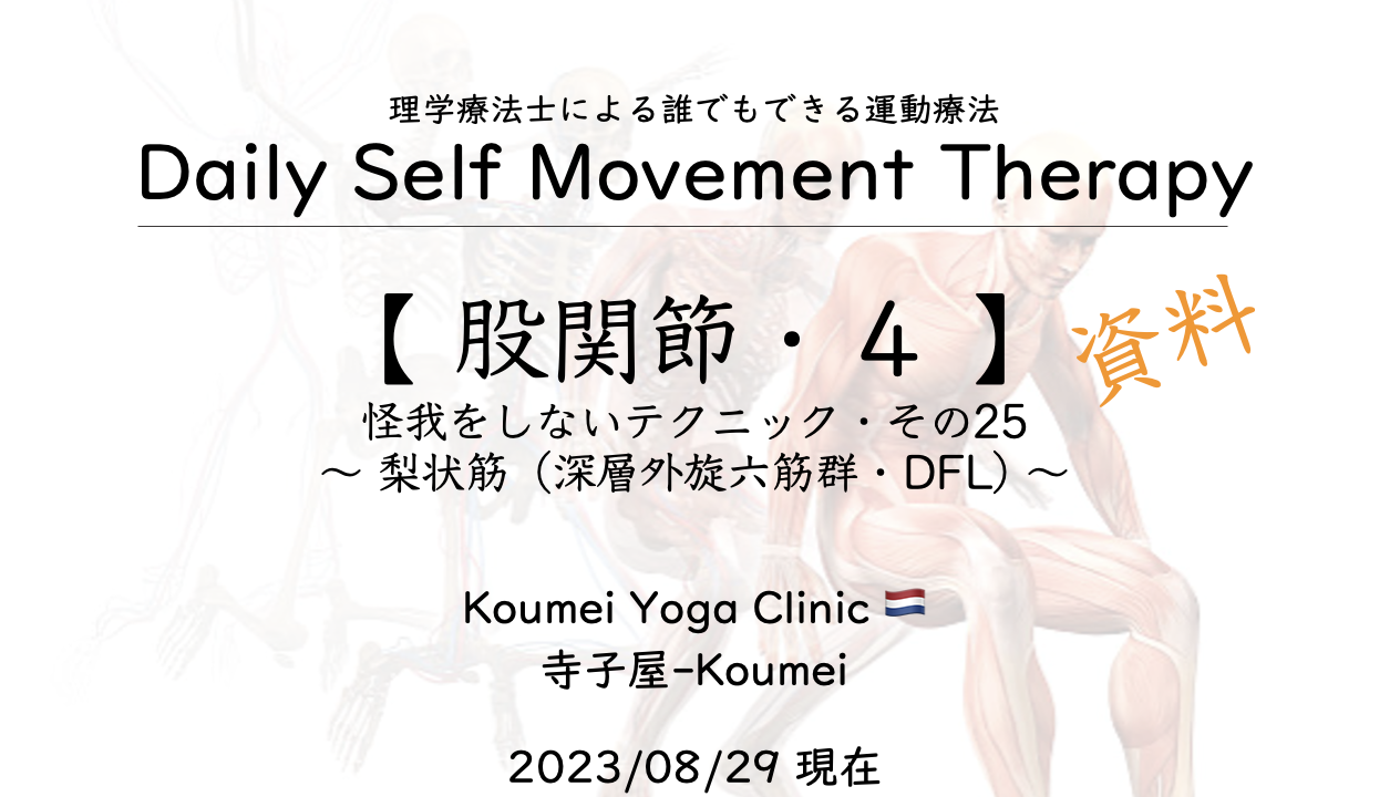 2023.08【 股関節4 〜 梨状筋 (DFL) 〜 】(2023.08.29現在)誰でもできる運動療法の解説-25 〜Road to the Movement Therapy 〜2023年8月29日 KYC