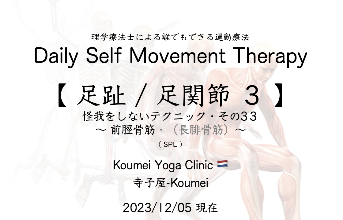 2023.12資料・【 足趾/足関節3 〜 SPL 〜 】(2023.12.05現在)誰でもできる運動療法の解説-33 / Daily Self Movement Therapy 〜 KYC 2023年12月5日 / 2025年5月13日 このコンテンツを閲覧するにはログインが必要です。 ログインはこちら. 新規会員登録はこちら Daily Self Movement Therapy 前脛骨筋 怪我をしないテクニック 資料 足趾 足関節 運動療法