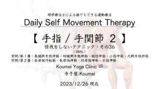 2023.12【 手指/手関節2〜 SBAL 〜 】(2023.12.26現在)〜 怪我をしないテクニック その36 /Daily Self Movement Therapy 〜 KYC 2023年12月26日 / 2025年3月19日 このコンテンツを閲覧するにはログインが必要です。 ログインはこちら. 新規会員登録はこちら Daily Self Movement Therapy SBAL テクニック 予防運動 怪我をさせない 怪我をしない 手指 手関節 理学療法士による運動療法というレッスン 筋膜 運動療法 運動療法というレッスン