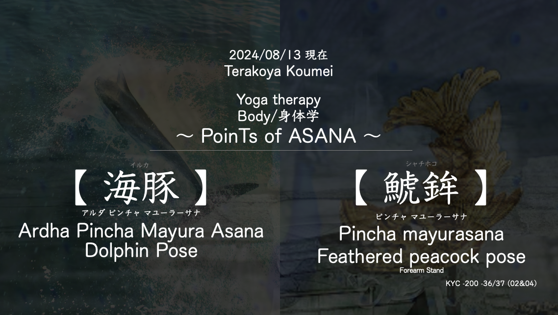 Body(身体学)【海豚・鯱鉾】(2024.08.13現在)〜運動療法としてのヨガテクニック・PoinTs of ASANA〜 KYC 2024年8月13日 / 2025年4月28日 このコンテンツを閲覧するにはログインが必要です。 ログインはこちら. 新規会員登録はこちら PoinTs of ASANA テクニック バンダ 不定愁訴 予防体操 呼吸 孔雀 死ぬぞ 海豚 理学療法士 腰痛 舐めるな危険 運動療法
