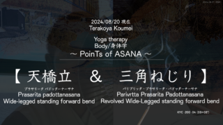 Asana(ポーズ)【 天橋立 & 三角ねじり】(2024.08.27現在)〜不定愁訴を解決するレッスンテクニック・Road to the ASANA〜 KYC 2024年8月27日 / 2025年4月3日 このコンテンツを閲覧するにはログインが必要です。 ログインはこちら. 新規会員登録はこちら Road to the ASANA アーサナ アサナ ウエスト テクニック バンダ ピラミッド ポーズ レッスン 三角ねじり 不定愁訴 予防体操 天橋立 理学療法士 股関節 運動療法