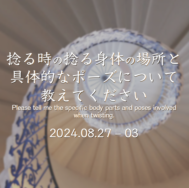 【 YES Koumei !】Q&A【捻る時の捻る身体の場所と具体的なポーズについて教えてください】(2024.08.27現在-03)〜 Terakoya Koumei 一問一答 〜 KYC 2024年8月27日 2024.08.28 このコンテンツを閲覧するにはログインが必要です。 ログインはこちら. 新規会員登録はこちら Q&A ピラミッド 一問一答 天橋立 寺子屋 捻り 理学療法士 運動療法