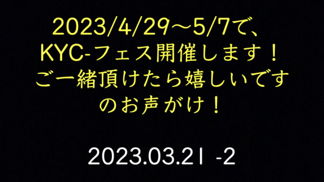 【 YES Koumei !】Q&A【2023/4/29〜5/7で、KYC フェス開催します!ご一緒頂けたら嬉しいですのお声がけ!】(2023.03.21 現在-2)〜 Terakoya Koumei 一問一答 〜2023年3月28日 KYC