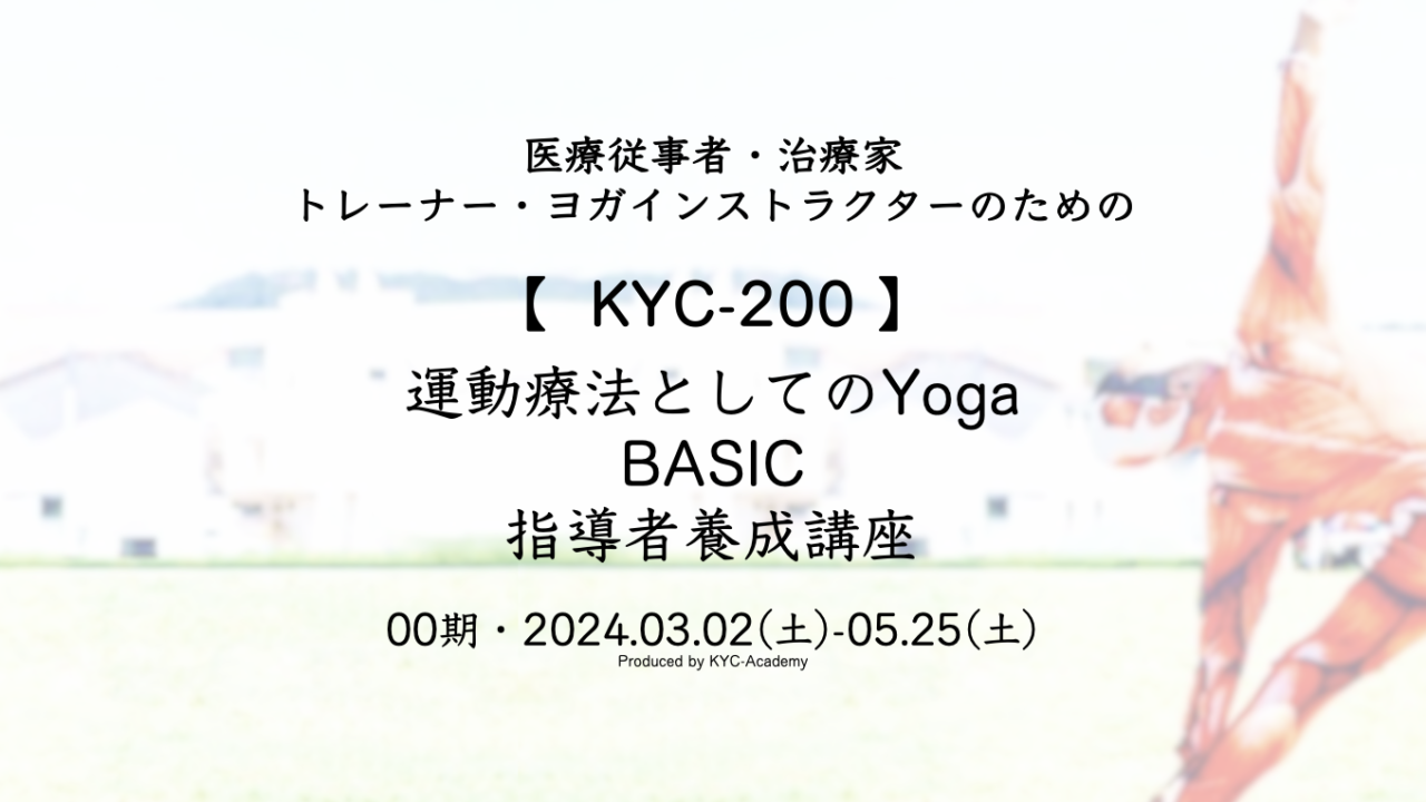 【 KYC – 200 】〜運動療法としてのYOGA指導者養成講座〜では、