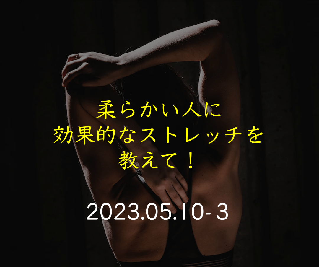 以前の私だったら、その人のどんな姿勢・動きのくせが問題で柔軟性が高まらないのか、仮にそれがわかったとしても、だったら何をすればいいのか超曖昧だったと思います。そして、とりあえず柔軟性を高めたい部位を伸ばすポーズをいろいろやるだけだったと思います。